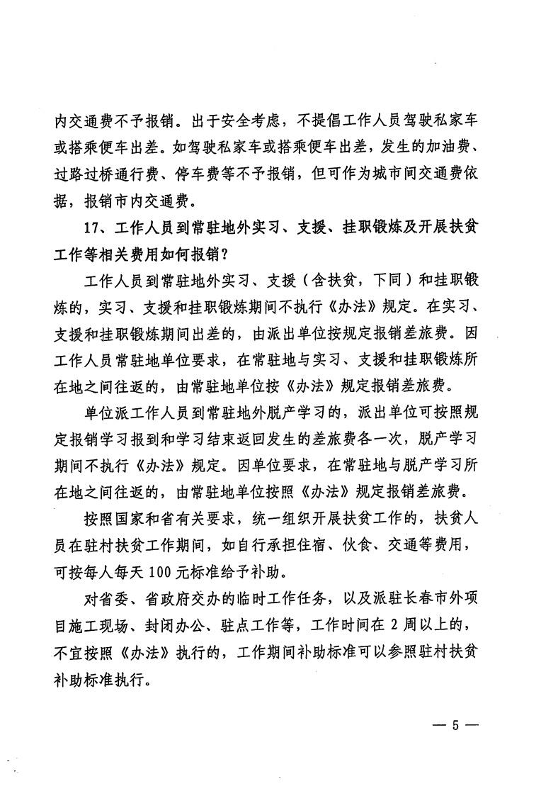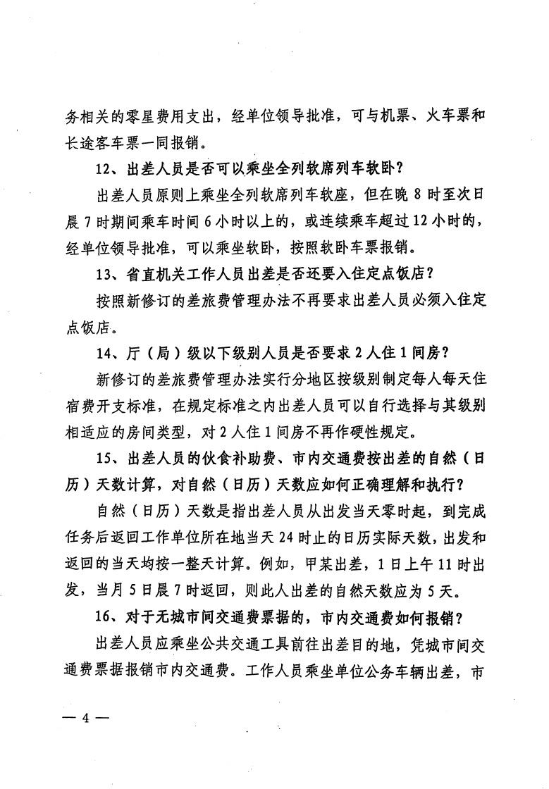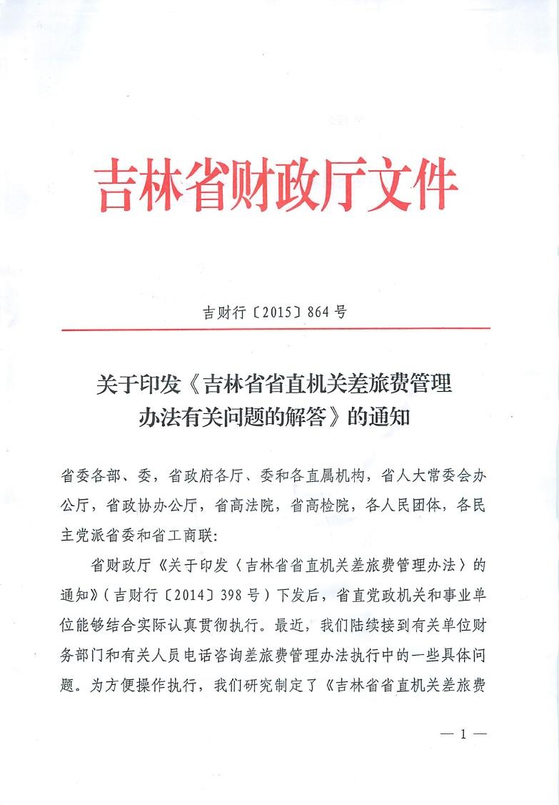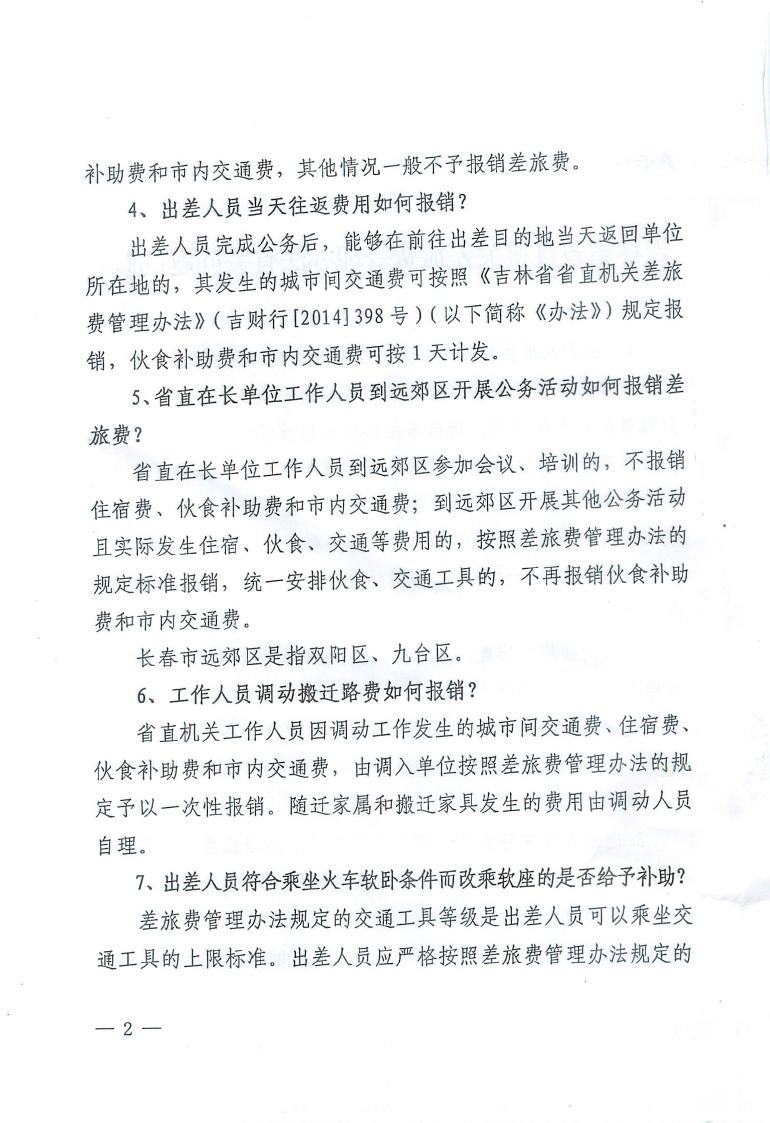 吉林省省直机关差旅费管理办法有关问题的解答