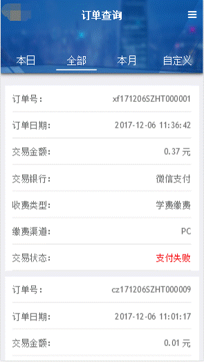 A、用户可按本日、全部、本月、自定义时间段进行订单检索;