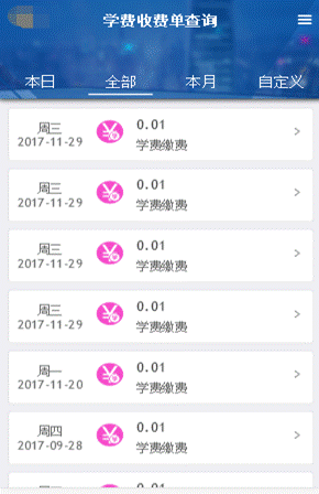 支付平台主要包括的功能有:个人信息管理、欠费查询、学费缴费、其他缴费、缴费记录查询、已缴费信息查询以及项目报名。
